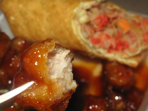 Once again there’s a bit too much flour in the battering of the chicken but the orange glaze sauce is very tasty. Orange flavor permeates throughout but doesn’t overpower. It’s truly an awesome combination. I think of the combination plates I’ve tried (General Tso’s, Sesame Chicken, Orange Chicken, Sweet and Sour Chicken) Orange Chicken is a new favorite.
